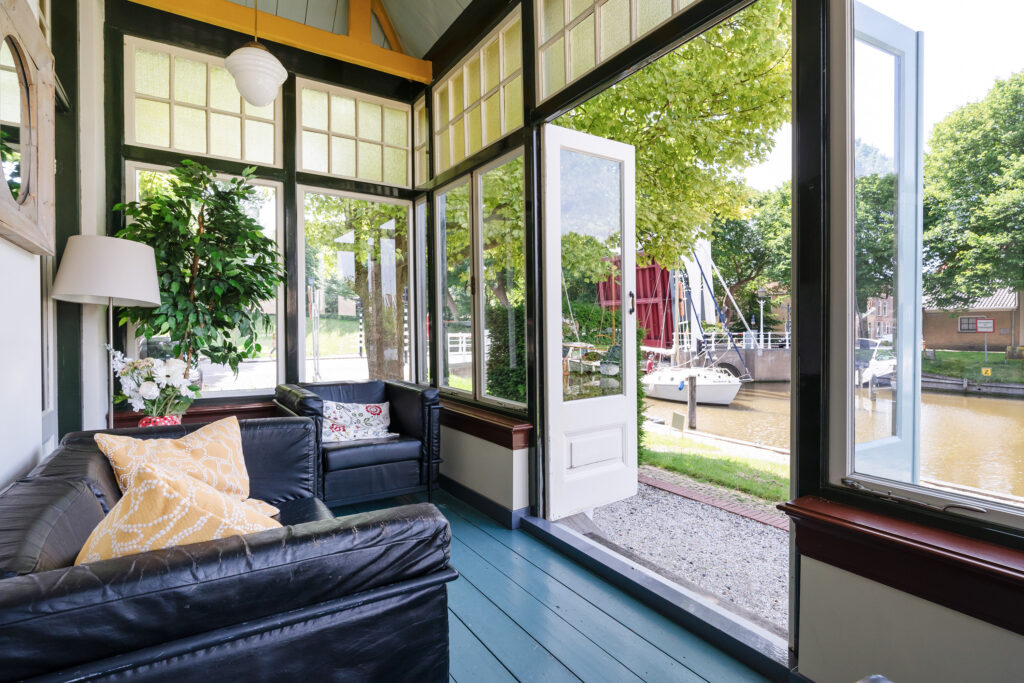 Van der Veen, geboren en getogen in Harlingen, kende het gebouw vlak bij het bruggetje al wel. Ook had ze al snel een bijnaam klaar. „Ik noem de woning het Pippi Langkous-huis”, zegt ze. Het meeste indruk maakte de serre aan de waterkant. „Dat is zo’n fijne plek”, zegt Van der Veen. Vanuit de luie stoel zagen ze vele zwaaiende fietsers voorbijkomen en vele bootjes langsvaren.