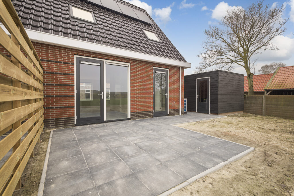 De ruime achtertuin met prachtig uitzicht over de landerijen, is gelegen op het zuidwesten, heeft een achterom met een berging met elektra. En een mooie kans; de voor- en achtertuin is nog niet aangelegd en kan volledig naar je persoonlijke wensen worden ingericht, zodat je meteen je ideale buitenruimte kunt creëren. De voortuin is voorzien van eigen oprit met voldoende parkeergelegenheid in de naaste omgeving.