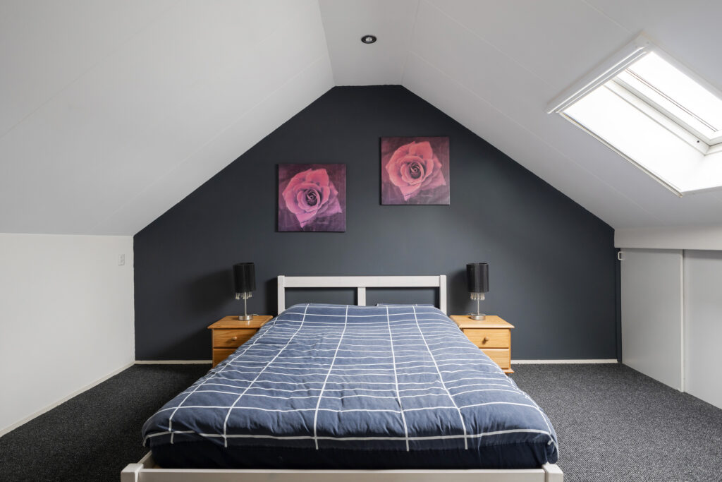 Via een vaste trap is de ruime en lichte overloop met dakraam bereikbaar. Op de overloop bevindt zich de CV-opstelling en elektrische boiler (48L) met toegang tot een ruime 4e slaapkamer met groot dakraam, radiator met bergruimte achter de knieschotten.