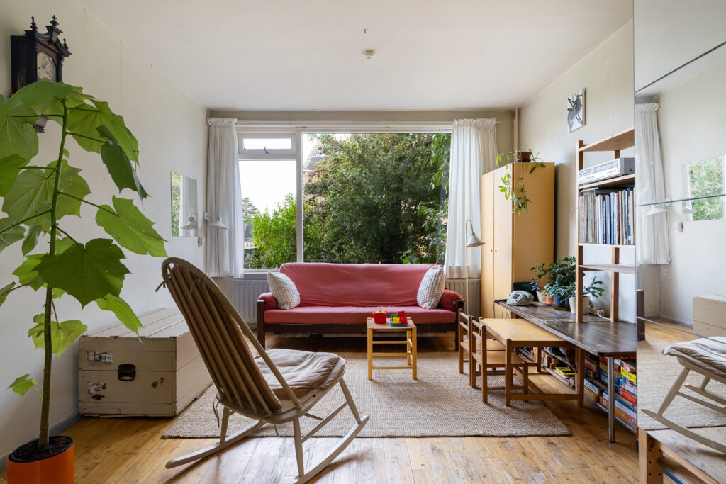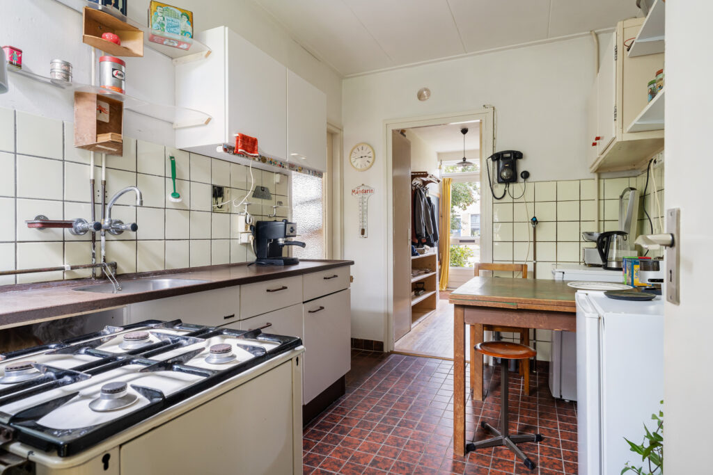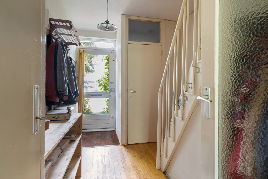 Via de voortuin bereik je de entree van de woning, met trapopgang naar de eerste verdieping, trapkast en geeft toegang tot het toilet en de deur naar de lichte woonkamer. De woonkamer is voorzien van grote raampartijen en geeft toegang tot de achtertuin door de openslaande deuren. De keuken is praktisch ingericht met een keukenblok met vaatwasmachine aansluiting en geeft toegang tot de ruime bijkeuken met wasmachine aansluiting en achtertuin.