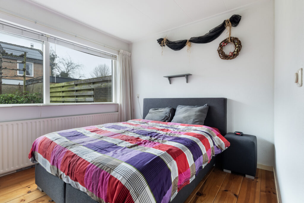 De woonkamer is heerlijk licht dankzij de grote raampartijen en is gunstig gelegen op het zuidwesten. Extra praktisch: vanuit de woonkamer is er ook een deur naar de voortuin, waardoor je gemakkelijk even buiten stapt. Aan de achterzijde van de woning bevindt zich de slaapkamer op de begane grond, met daarnaast het toilet en de badkamer. Dit maakt de woning bij uitstek geschikt voor gelijkvloers wonen.