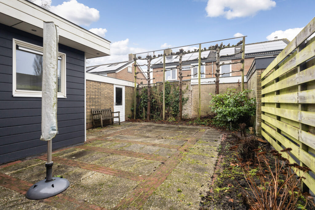 De woning beschikt over een grote garage van circa 20 m², ideaal voor hobby, opslag of het stallen van fietsen. Daarnaast is er een eigen carport. De achtertuin is gelegen op het noordoosten is ook bereikbaar via de garage.