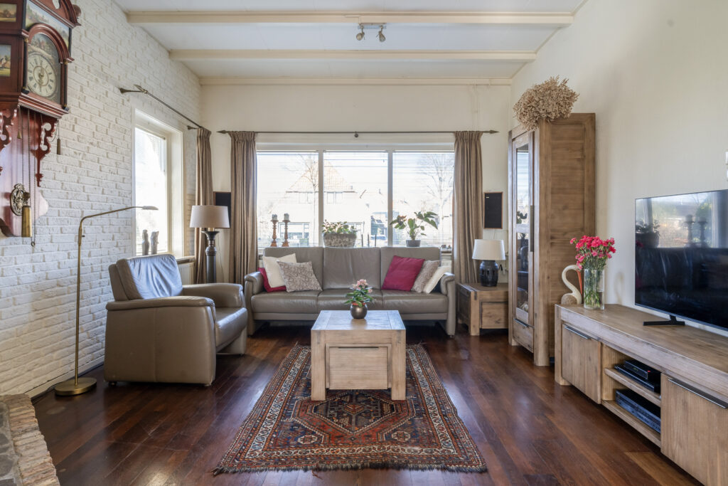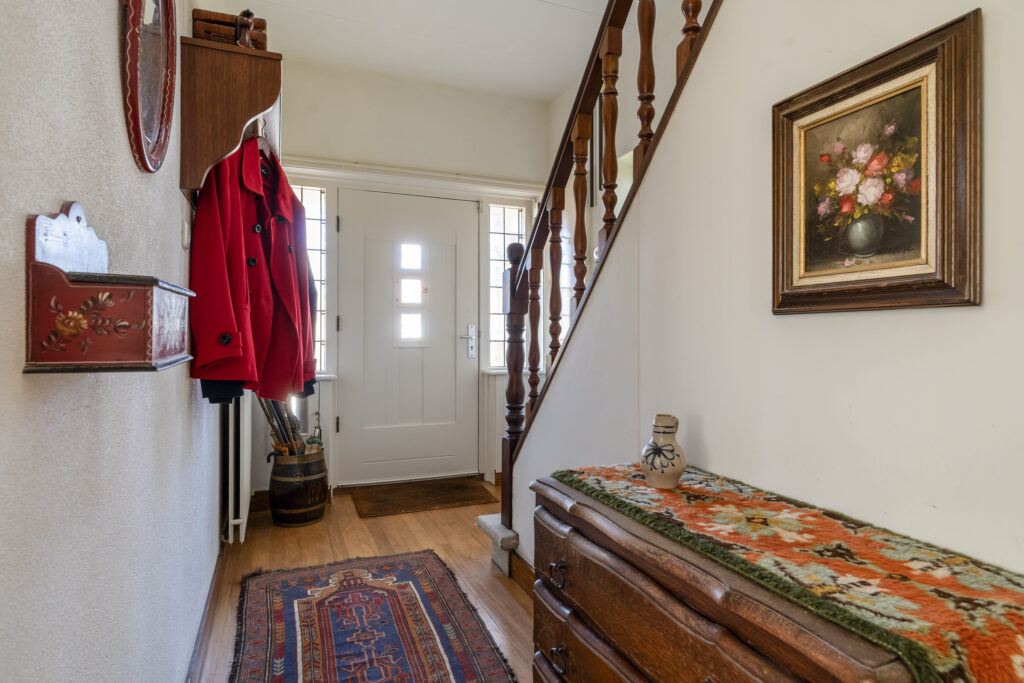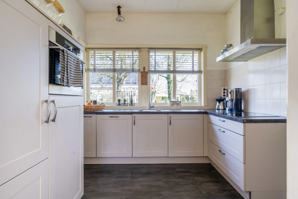 Via de voordeur kom je binnen in een lichte hal met prachtige glas-in-loodramen, trap naar de eerste verdieping en geeft toegang tot de woonkamer. De woonkamer heeft een sfeervol balkenplafond en gezellige houtkachel. De prachtige open keuken is gelegen aan het eetkamergedeelte en is praktisch ingericht met moderne apparatuur zoals een combi-oven, vaatwasser, koelkast, 4 pits inductie kookplaat en geeft toegang tot de zeer ruime kelderkast. Vanuit de keuken loop je door naar de bijkeuken met deur naar het toilet, opbergkast en waar de witgoedopstelling en CV-ketel is geplaatst achter handige schuifdeuren. Via de bijkeuken heb je toegang tot de achtertuin en losstaande