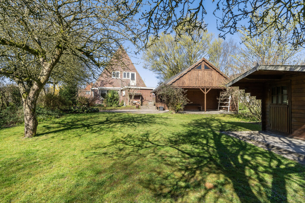 De groene sfeervolle tuin rondom de woning is altijd keurig onderhouden en voorzien van verschillende bloemen, planten en fruitbomen, wat zorgt voor een natuurlijke en kleurrijke omgeving. De mogelijkheid voor meerdere terrassen, zorgt ervoor dat je op elk moment van de dag kunt kiezen voor zon of schaduw, perfect voor zomerse barbecues. Voor dierenliefhebbers is het verzorgen van kippen en konijnen ook ideaal door het aanwezige grote grasland, dus perfect voor gezinnen en hobbyisten. Naast de garage met overkapping, beschikt de achtertuin over een losstaand tuinhuis, ideaal voor al het tuingereedschap of tuinmeubilair.