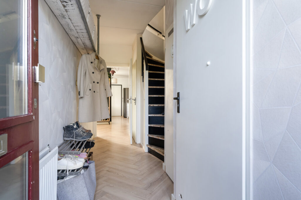 Binnen biedt de woning een lichte woonkamer met open keuken, een moderne badkamer op de eerste verdieping met tweede toilet, drie slaapkamers, waarvan één op zolder, en een extra slaap- of werkkamer. Een complete gezinswoning met prettige leefruimtes, veel lichtinval en een uitstekende ligging nabij alle voorzieningen.